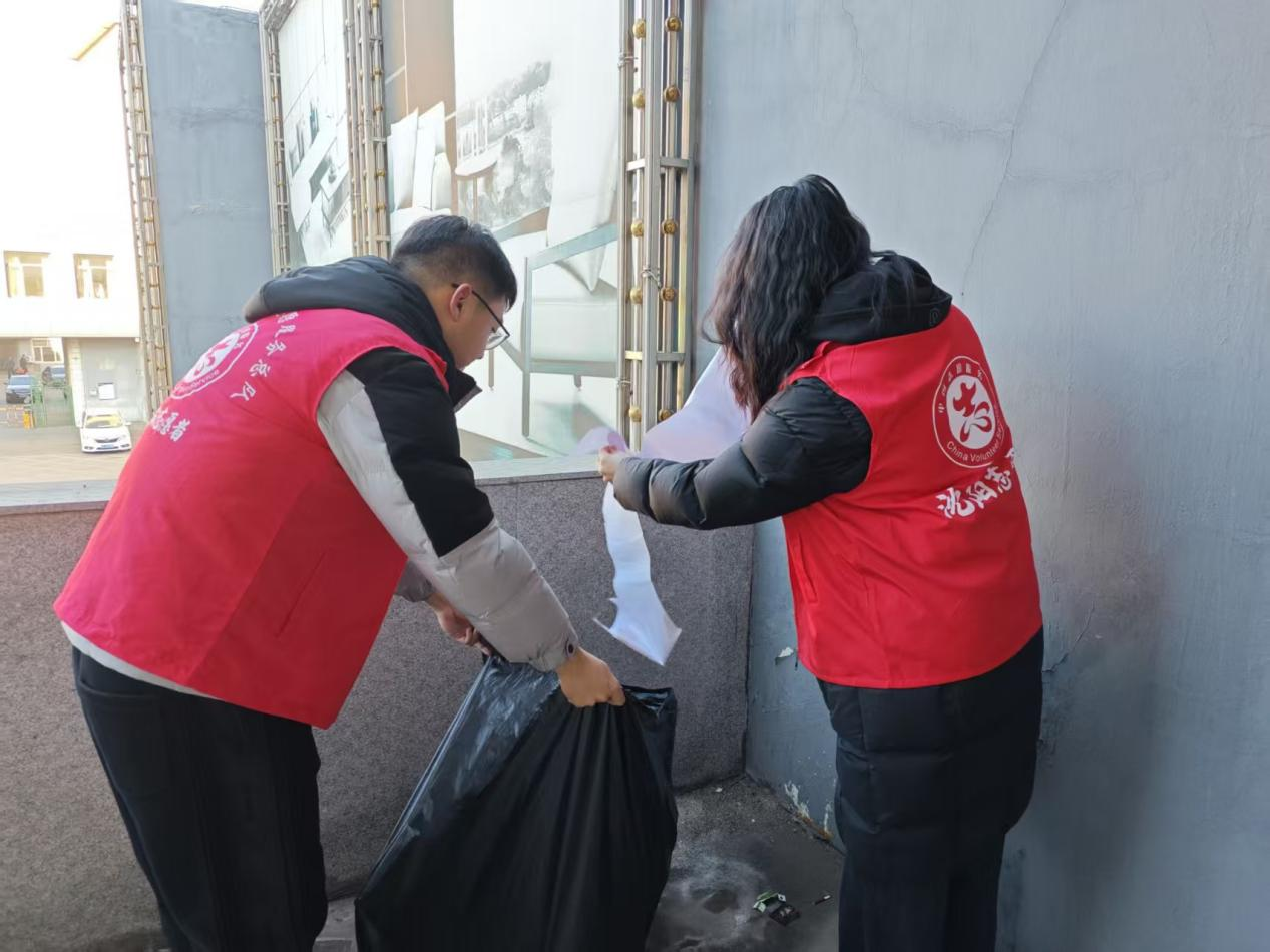 23材料01班李跃琳同学在河北省保定市莲池区欣隶佳苑开展志愿服务,重点进行小区公共区域卫生清理。