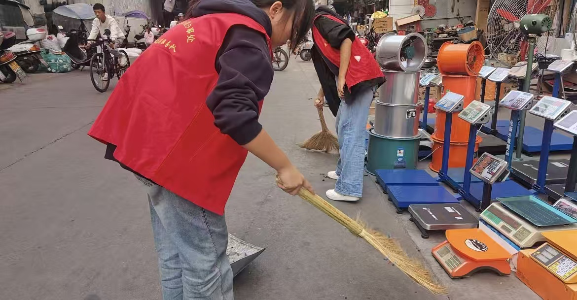 24机制专升本03班李跃同学在广水市开展志愿服务,对社区楼道、活动广场等区域进行清扫,清除垃圾、打扫卫生死角,改善社区居住环境。