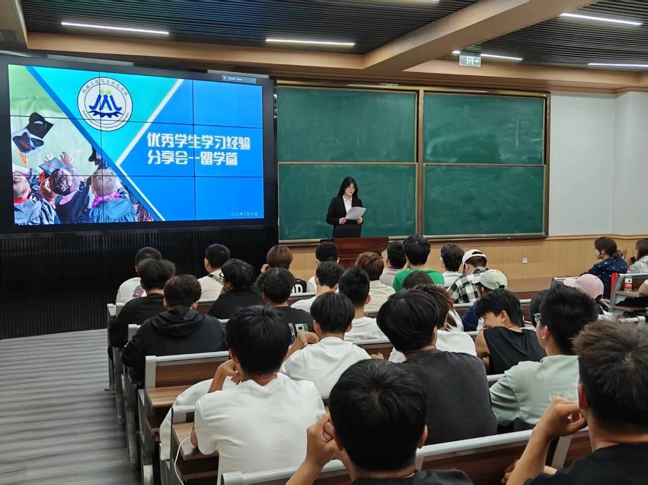 最后,21机制中白精英班的夏裕豪同学带着自己留学期间的宝贵经历,与在场新生分享了一段充满收获与成长的海外旅程。留学时,他攻克专业课程,在实践中提升素养、拓宽视野,还提及参观博物馆、体验当地文化、外出旅行等文化探索点滴。他表示,留学始于勇气走出舒适区,终于满载收获,过程每一步都在塑造生命厚度。期间,良师益友给予前行动力,独立生活能力也大幅提升,从依赖泡面到能做爱吃的菜,这小小的转变背后,是他不断适应、不断成长的见证。谈及未来,夏裕豪规划清晰。他表示,俄语技能、专业知识、多元文化认知及国际友人,是留学收获的三大宝贵“财富”。