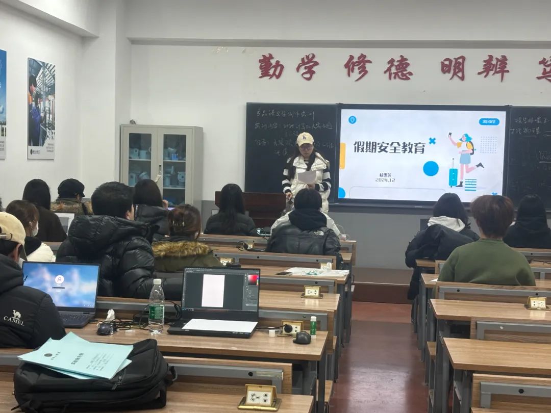 班会上,辅导员老师向同学们传达了学院关于学生离校前及寒假期间安全教育要求,辅导员提醒同学们离校前要关闭电源,防止火灾发生;要将宿舍卫生整理干净,把垃圾带出宿舍楼,避免长时间放置发霉变质,滋生细菌;要将贵重物品随身携带,妥善保存。此外,各位辅导员老师还围绕交通安全、消防安全、出行安全、网络诈骗等多个方面向同学们讲解了安全的重要性,以提高同学们的安全防范意识,将安全教育落到实处。并通过讲解案例分析、提问互动等方式,引导学生深入了解各类安全隐患,掌握自我保护方法。为同学们的学习与生活保驾护航。