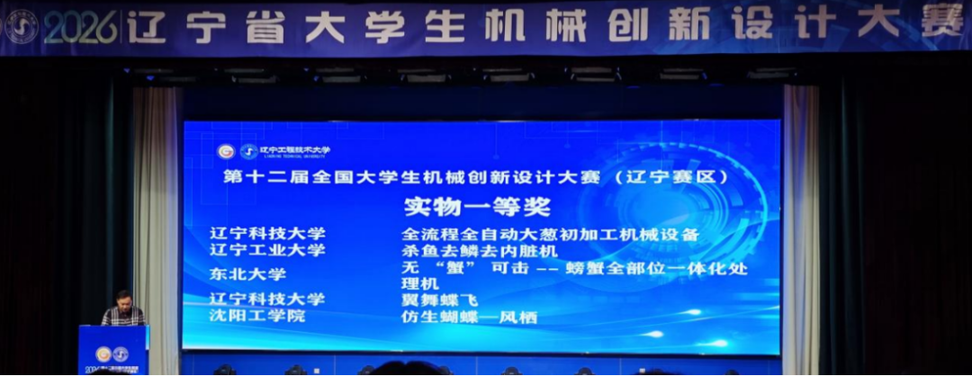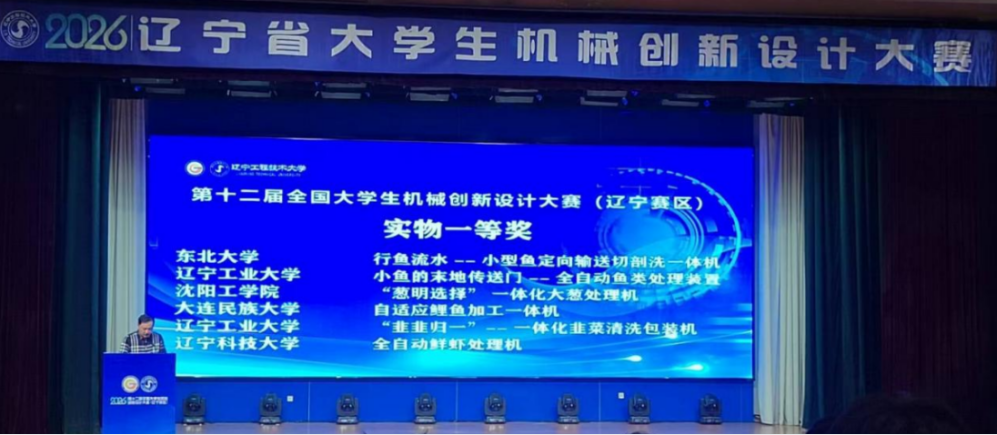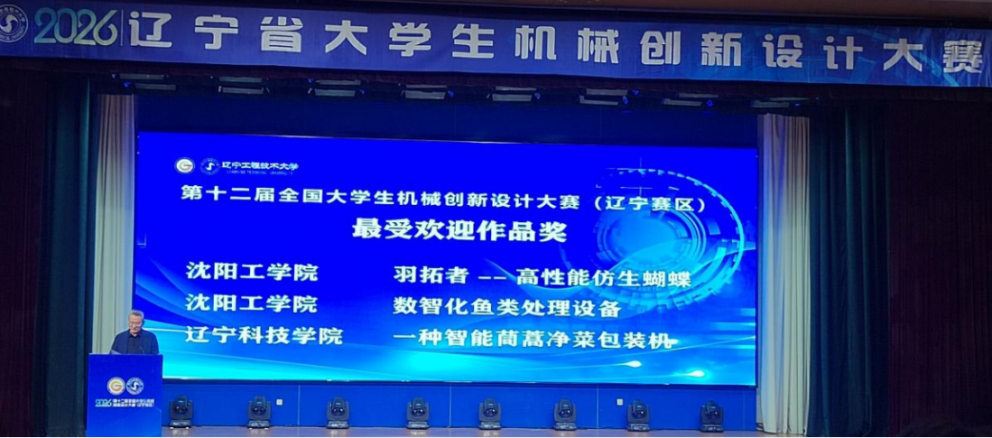 4月10日至12日,2026年辽宁省大学生机械创新设计大赛决赛在辽宁工程技术大学举行。我校机械工程与自动化学院参赛团队凭借扎实的专业能力、出色的创新设计与稳定的现场发挥,斩获省级一等奖2项、二等奖4项、三等奖2项。在全省仅设3个“最受欢迎作品奖”中,我校包揽前两项;同时,学校荣获“优秀组织单位”称号,全省仅11所高校获此殊荣。